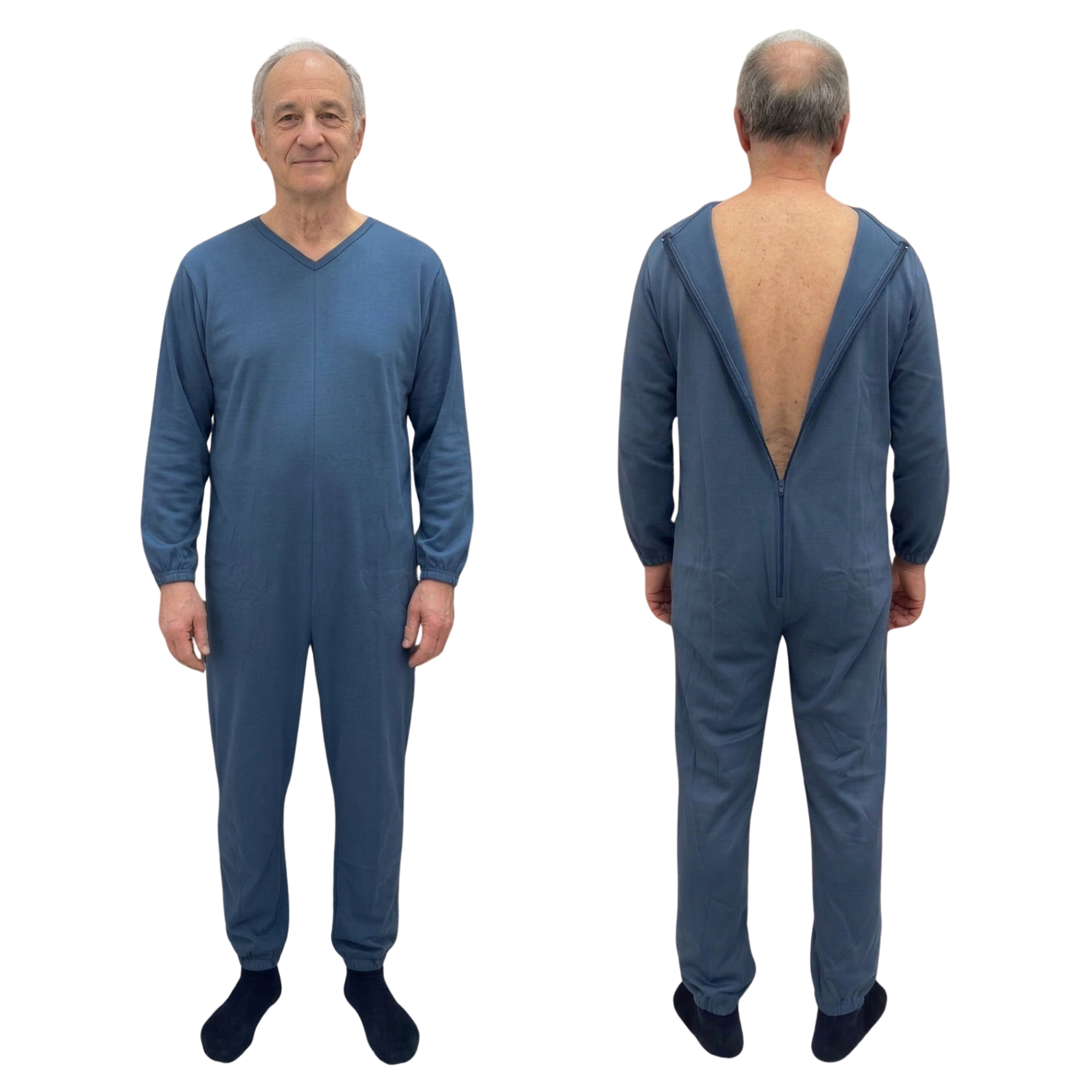 Progettato per garantire comfort, igiene e praticità, questo pigiama è dotato di cerniera posteriore integrale, che facilita il lavoro degli operatori durante il cambio degli ausili e impedisce al paziente di rimuovere autonomamente l’indumento.