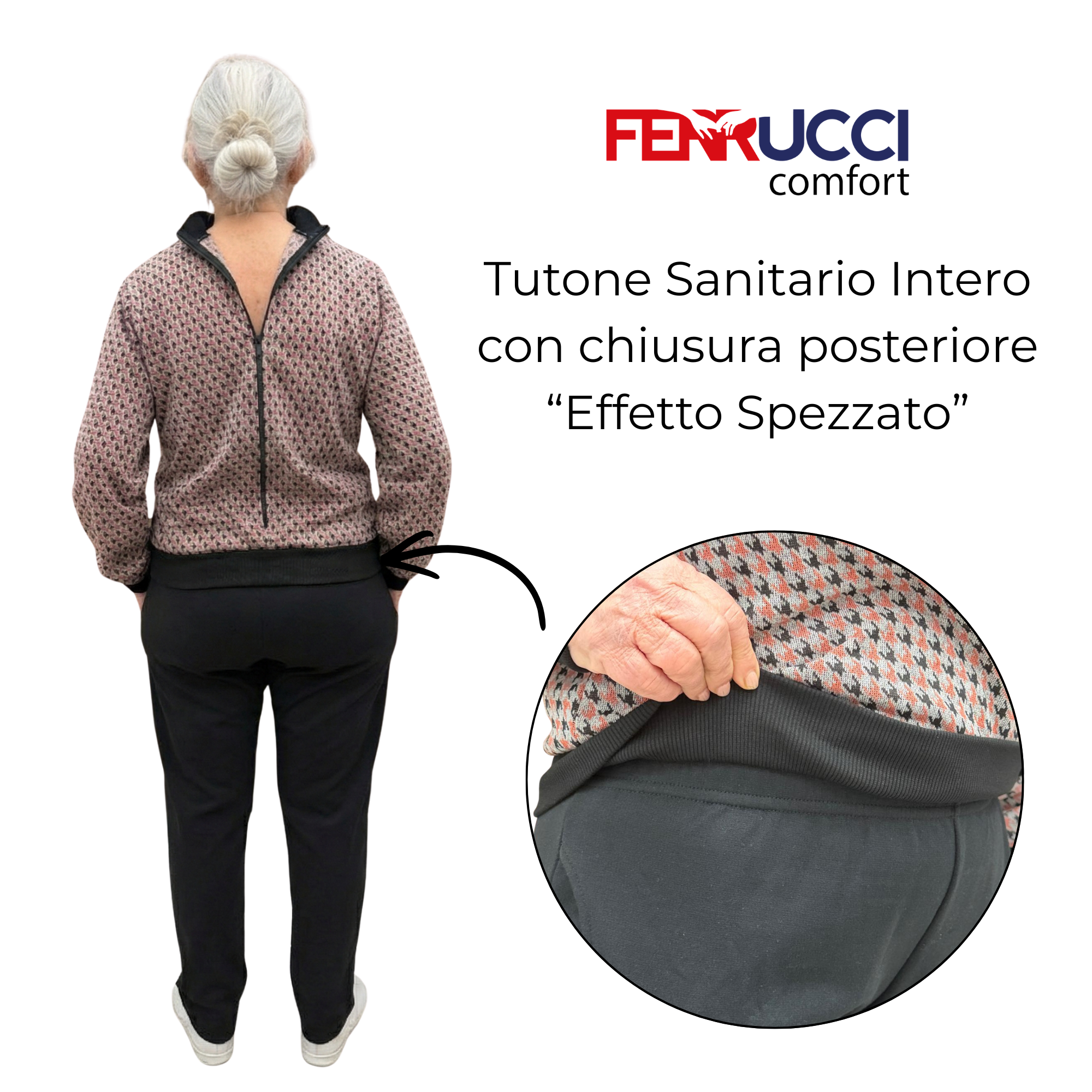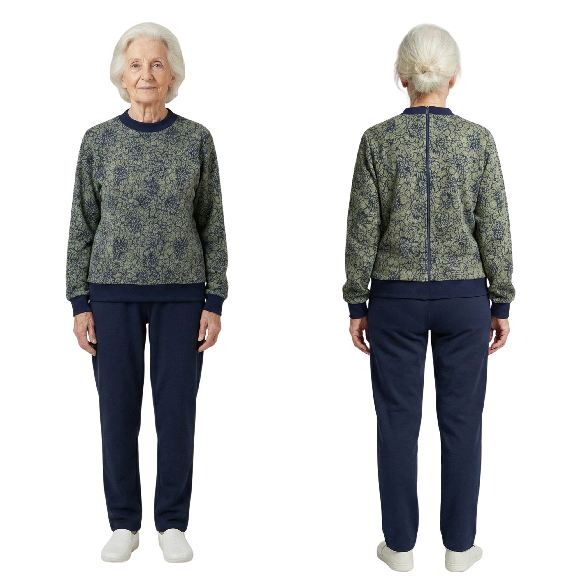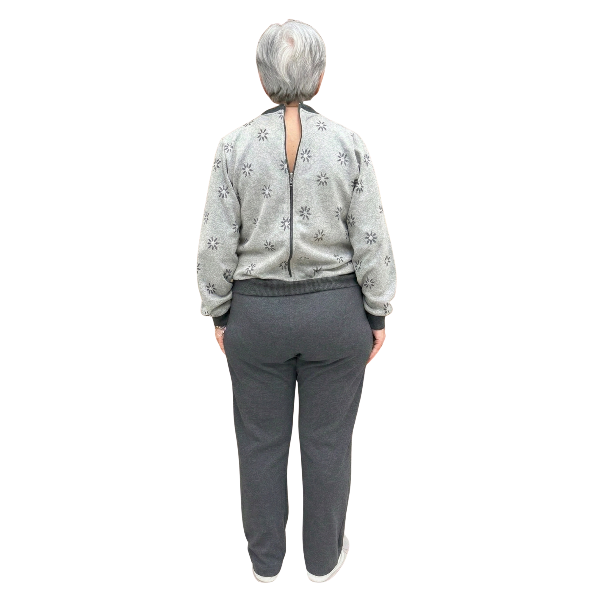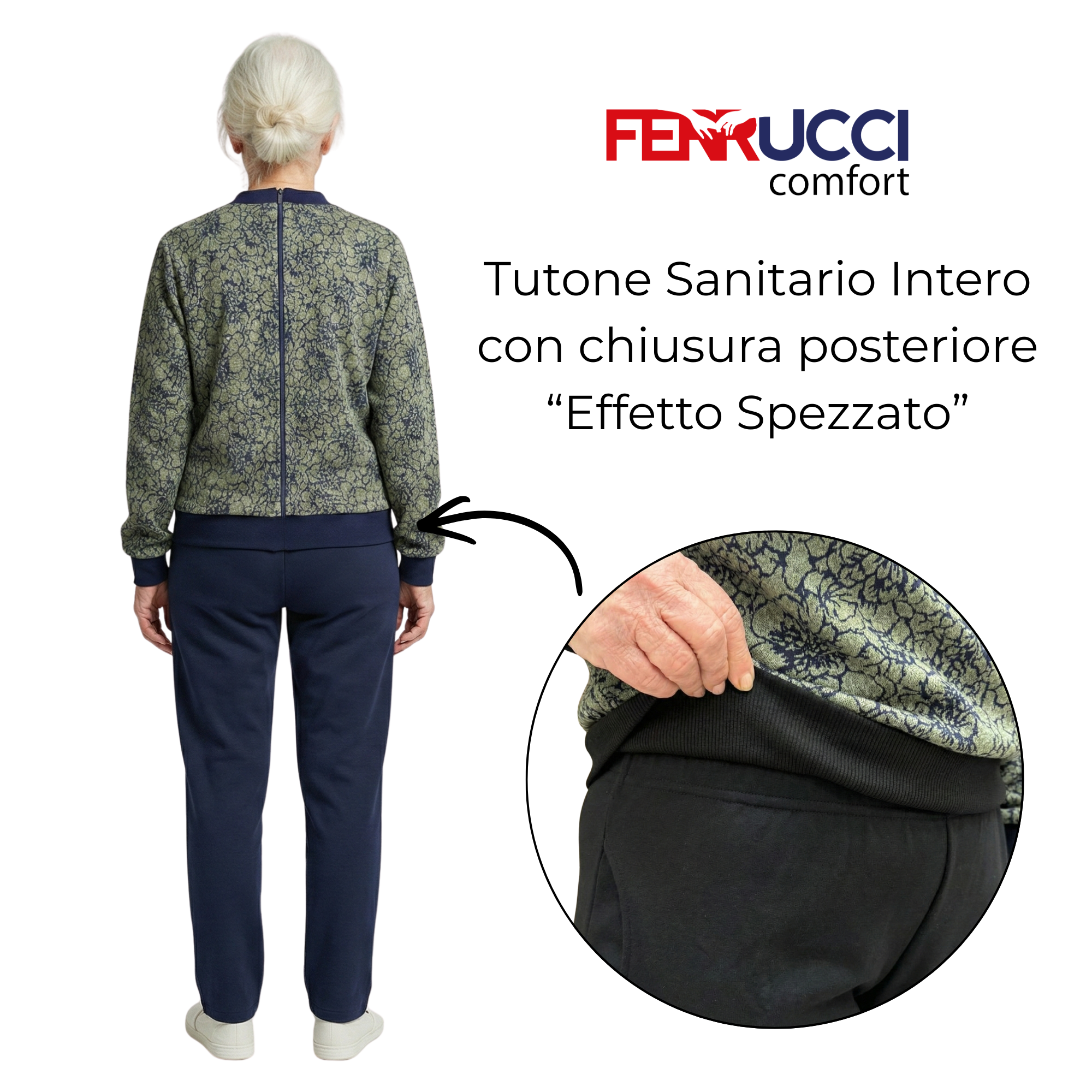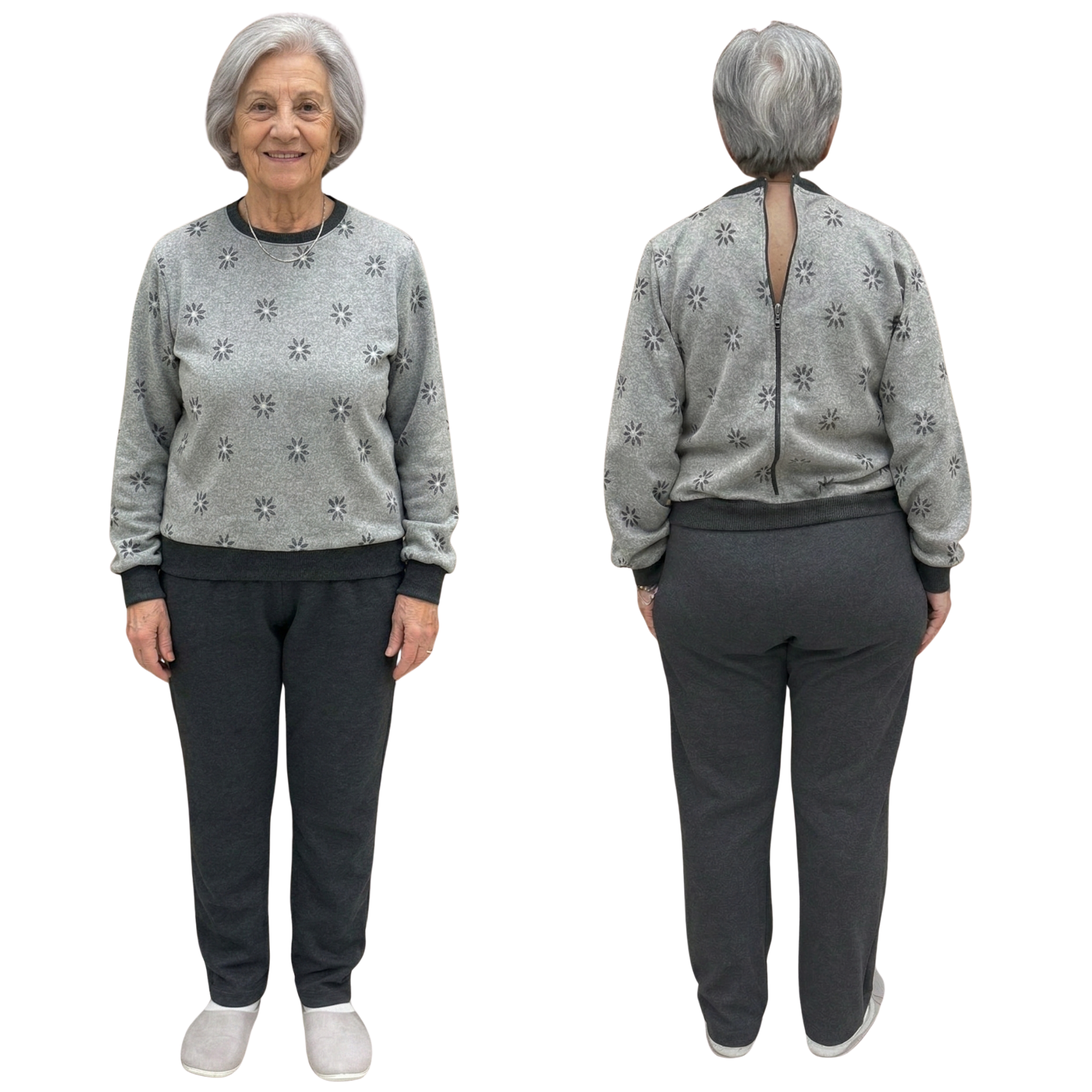 Dieses Kleidungsstück vereint die Ästhetik eines Freizeitanzugs mit der Funktionalität eines medizinischen Geräts. Obwohl es optisch wie ein Doppelkleidungsstück (Hose und Sweatshirt), Es ist eigentlich ein Einteiler wodurch der Patient daran gehindert wird, es selbstständig zu öffnen. Die Konstruktion wird durch praktische Seitentaschen und einen robusten Der Reißverschluss befindet sich auf der Rückseite., was der Pflegekraft maximale Kontrolle und dem Patienten absolute ästhetische Würde bei Ausflügen garantiert.