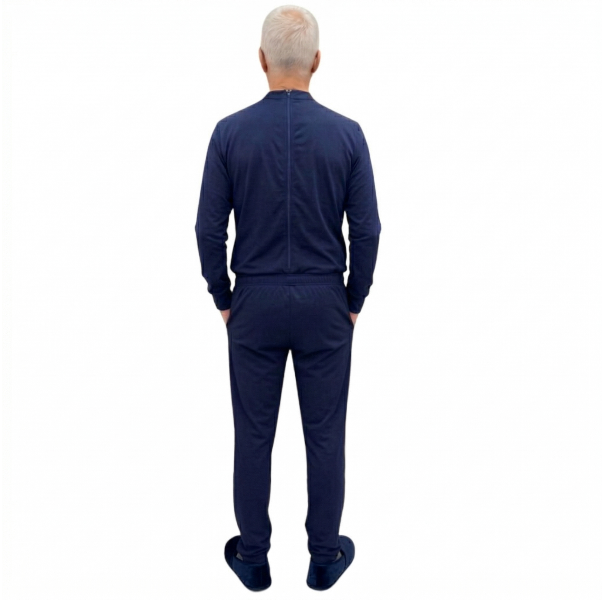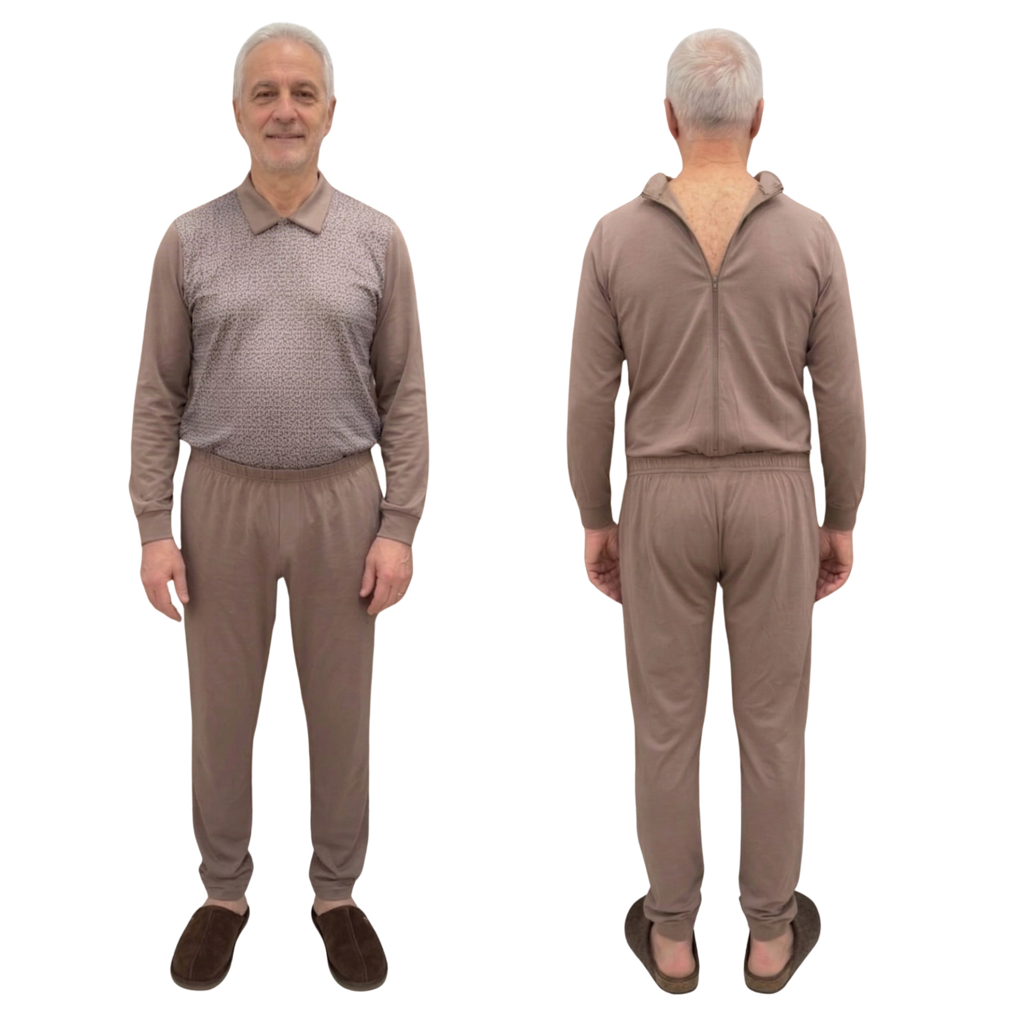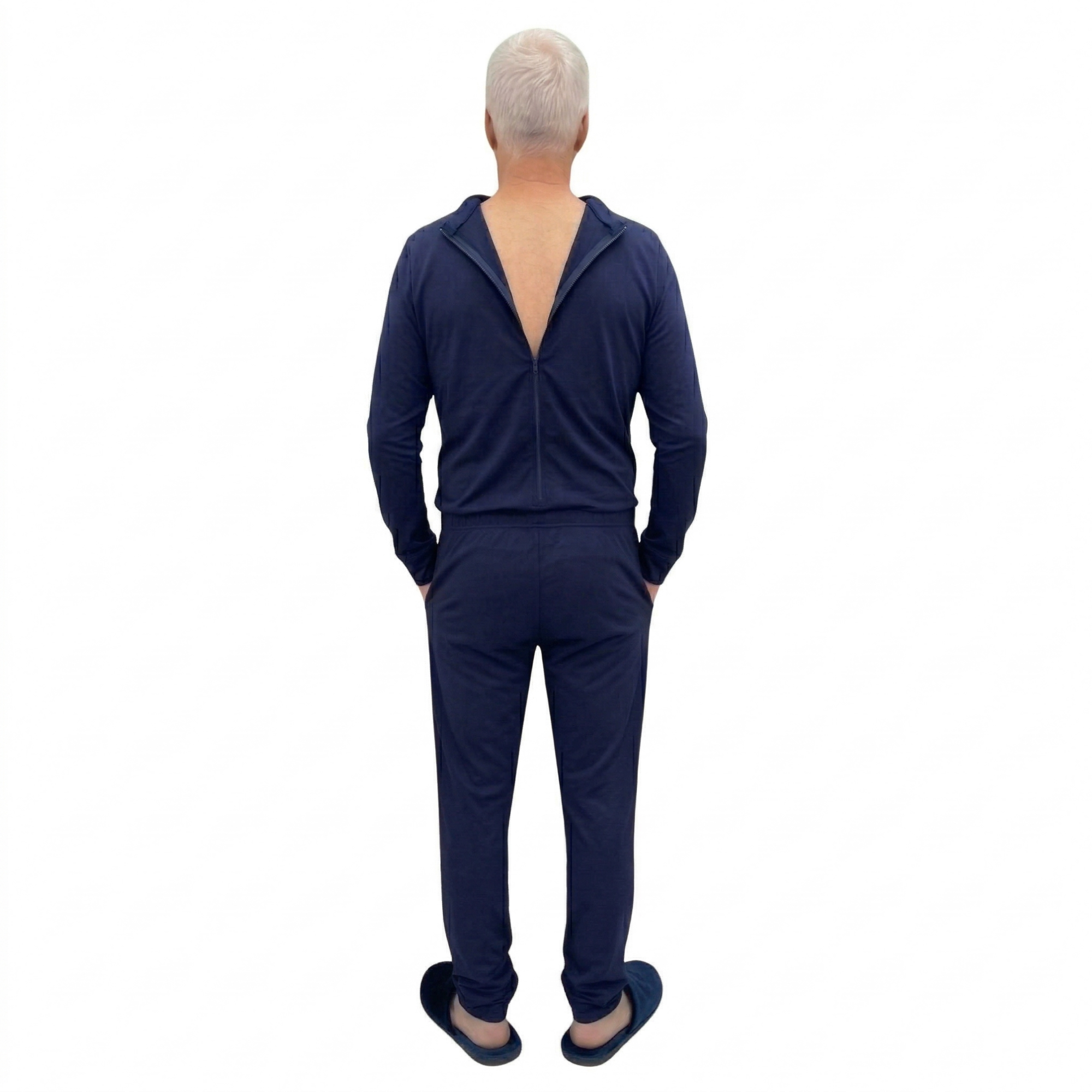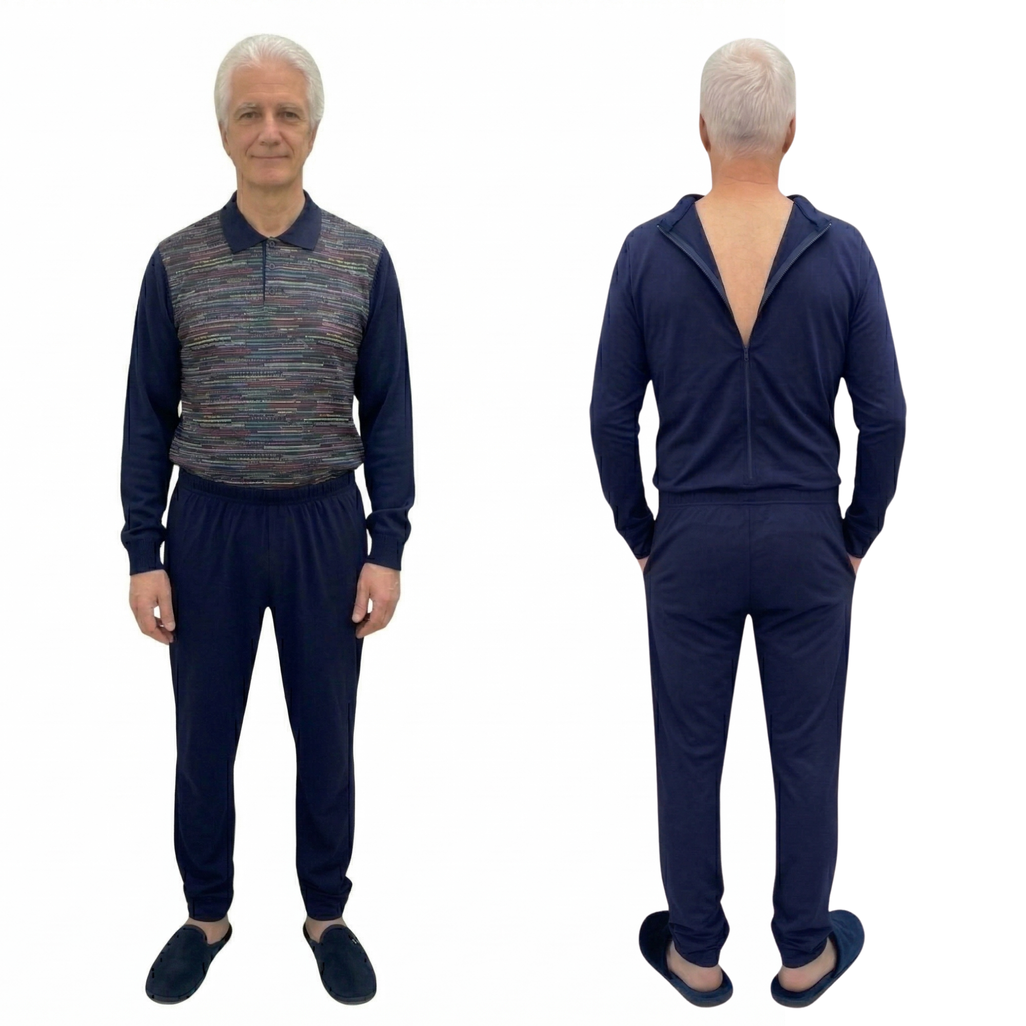 Tweekleurige gezondheidszorgpyjama uit één stuk met ritssluiting op de rug voor ouderen met Alzheimer, dementie of incontinentie - 9023 ML PL
