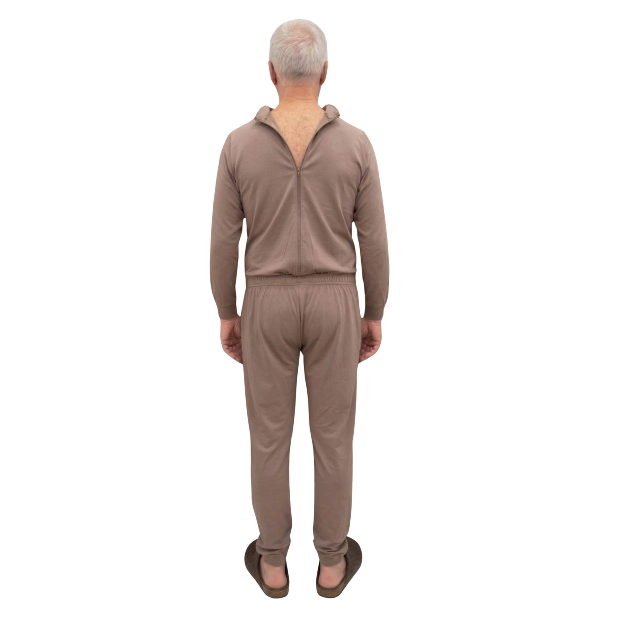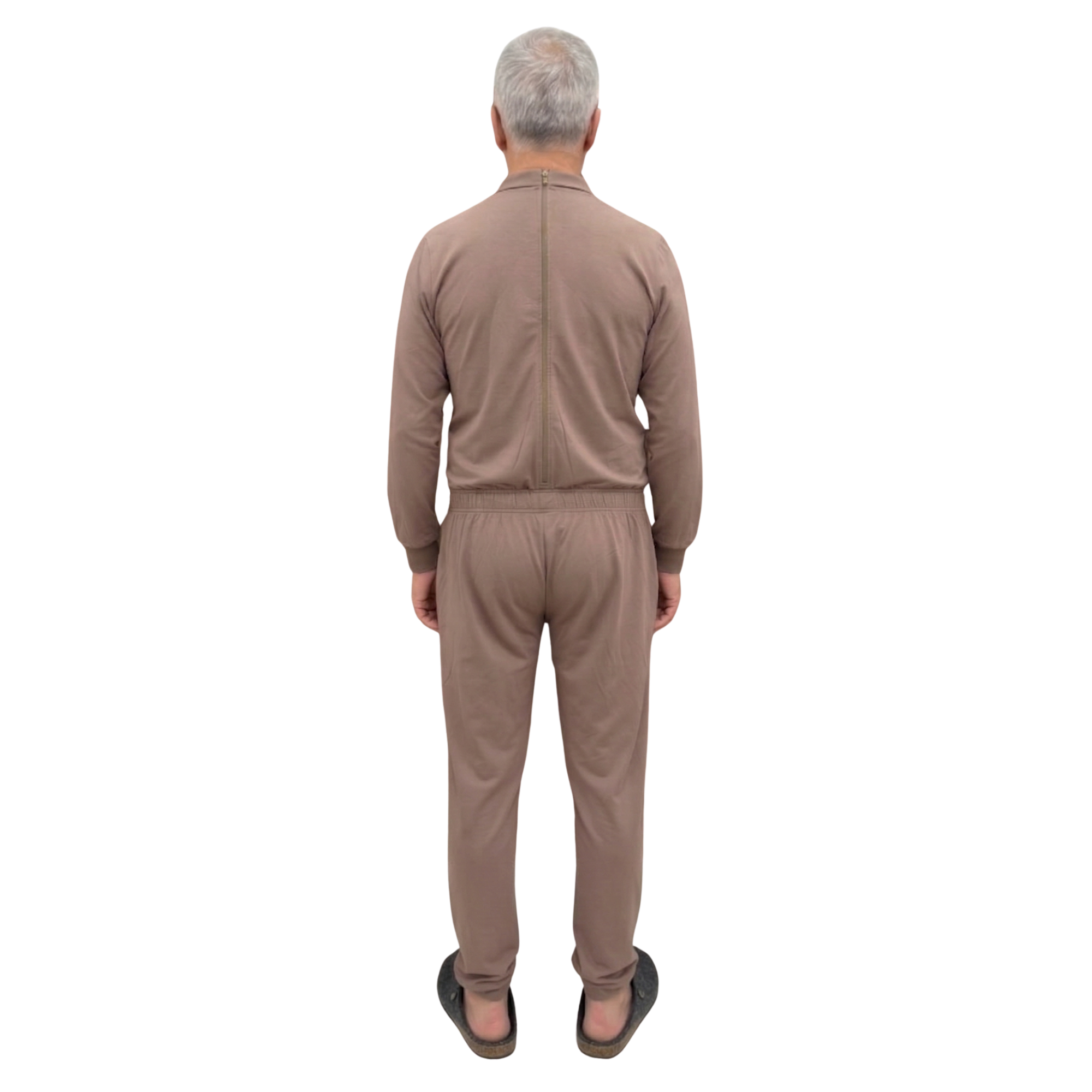 Het pak is voorzien van een ritssluiting aan de achterkant, waardoor het geopend kan worden zonder dat het per ongeluk verwijderd wordt door de oudere patiënt of iemand die lijdt aan een psychische aandoening zoals Alzheimer/dementie.