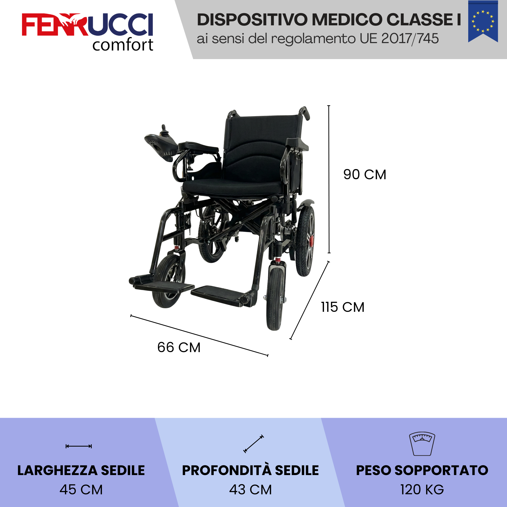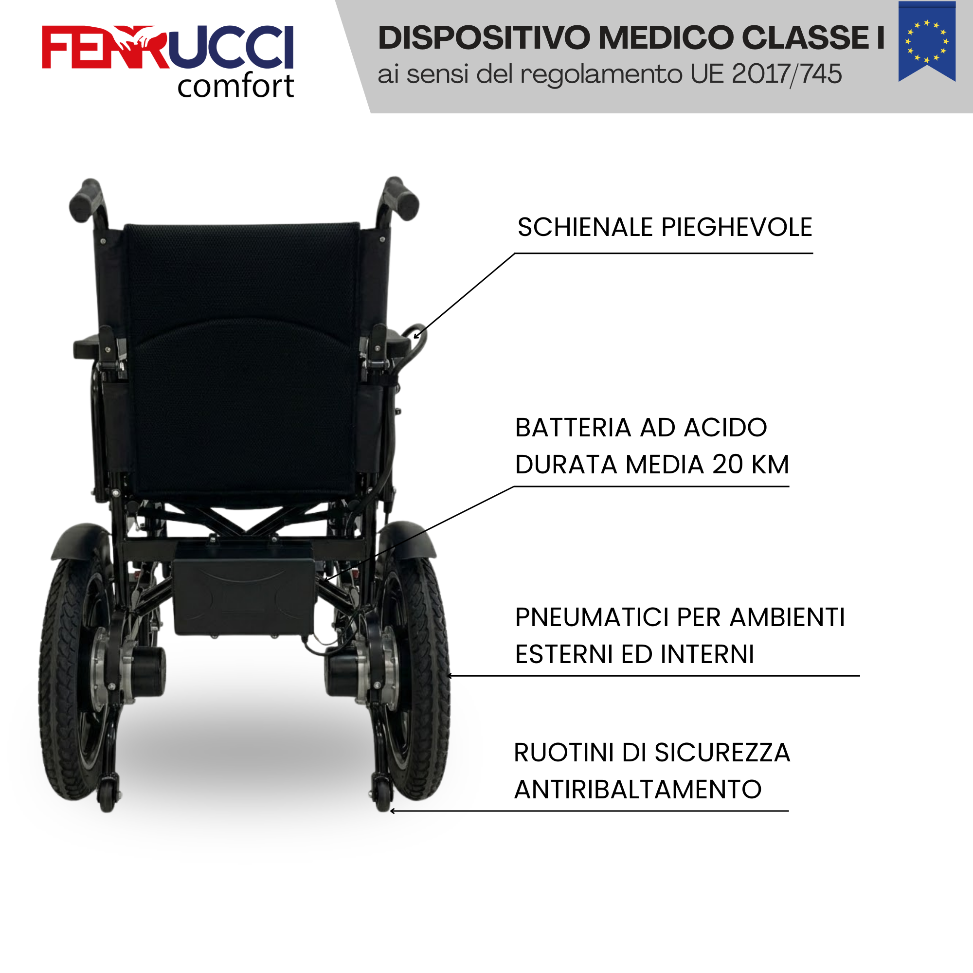 Sedia a Rotelle Automatica Elettrica Pieghevole, Autonomia 20 Km, Professionale, Nera