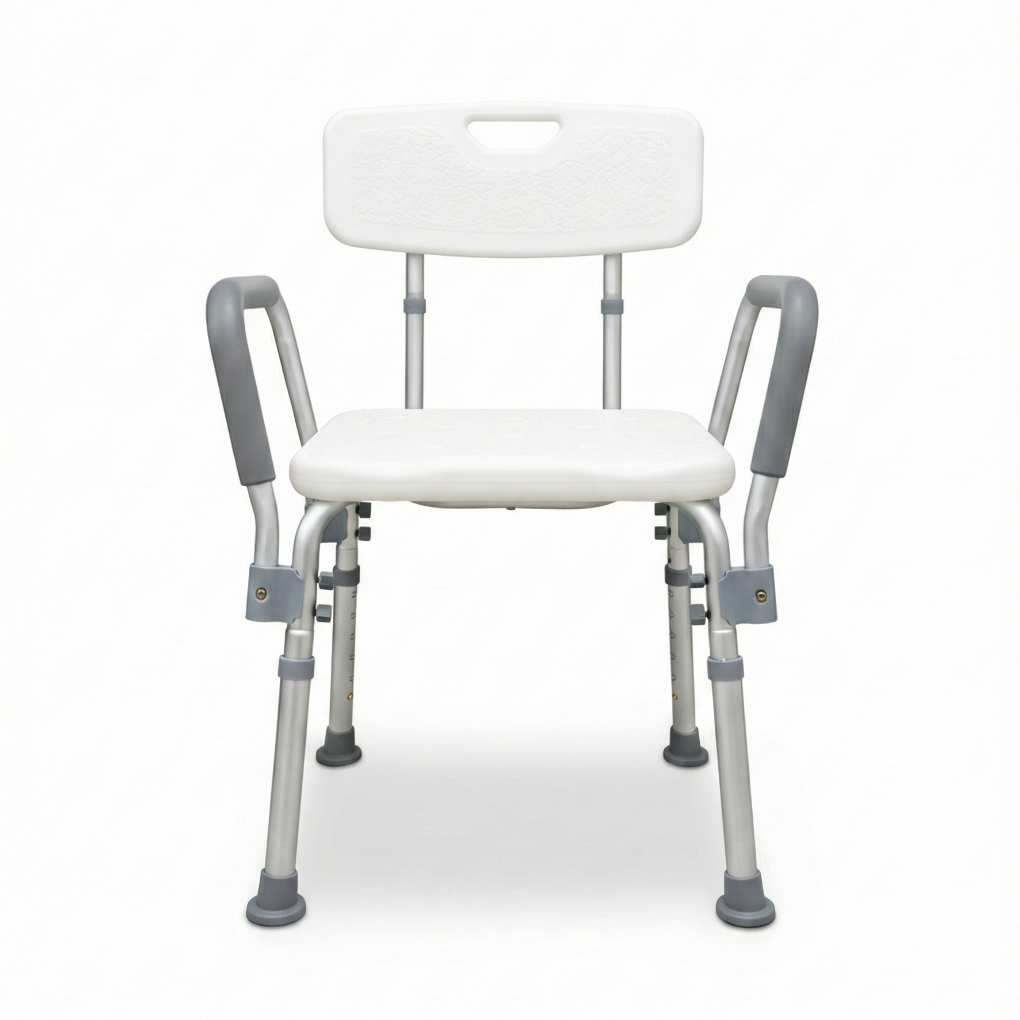 Sedia da Doccia con Schienale e Braccioli Estraibili, Altezza Regolabile